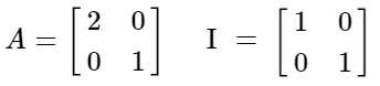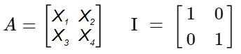 Siendo A una matriz cualquiera e I su respectiva matriz identidad en este caso mostraremos una matriz de 2x2, pero el ejemplo se puede dar con matrices de mayor tamaño: