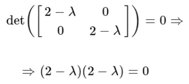 Planteamos la ecuación para obtener los autovalores que aprendimos anteriormente: