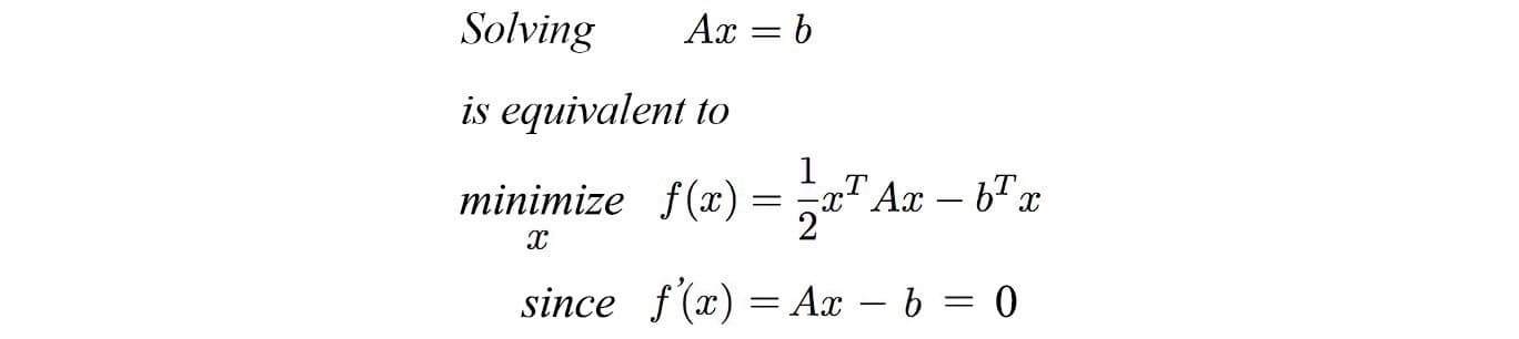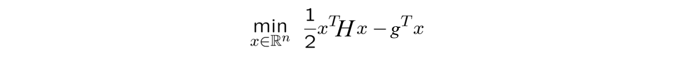 Si es una ecuación cuadrática significa que esto se convierte en un problema de optimización cuadrática y por lo tanto podemos resolverlo mediante el método de Gradiente Conjugado.