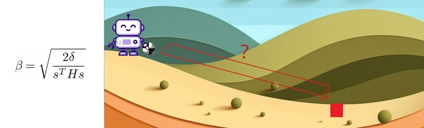 3. : La raíz cuadrada se aplica al cociente . Esto proporciona el factor de escala () que limita la magnitud de la actualización de la política. Tomar la raíz cuadrada asegura que el paso máximo se ajuste de manera proporcional a la relación entre el umbral de divergencia y la curvatura de la función de costo en la dirección de búsqueda.
