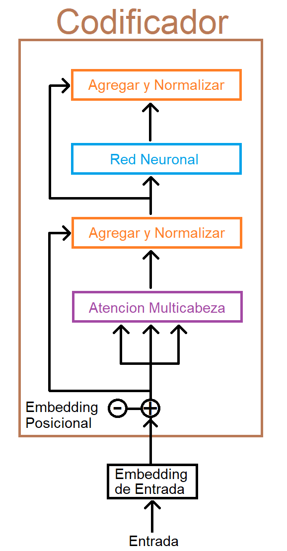 La capa codificadora sirve para transformar todas las secuencias de entrada en una representación abstracta y continua que encapsula la información aprendida de toda la secuencia. Esta capa comprende dos submódulos: